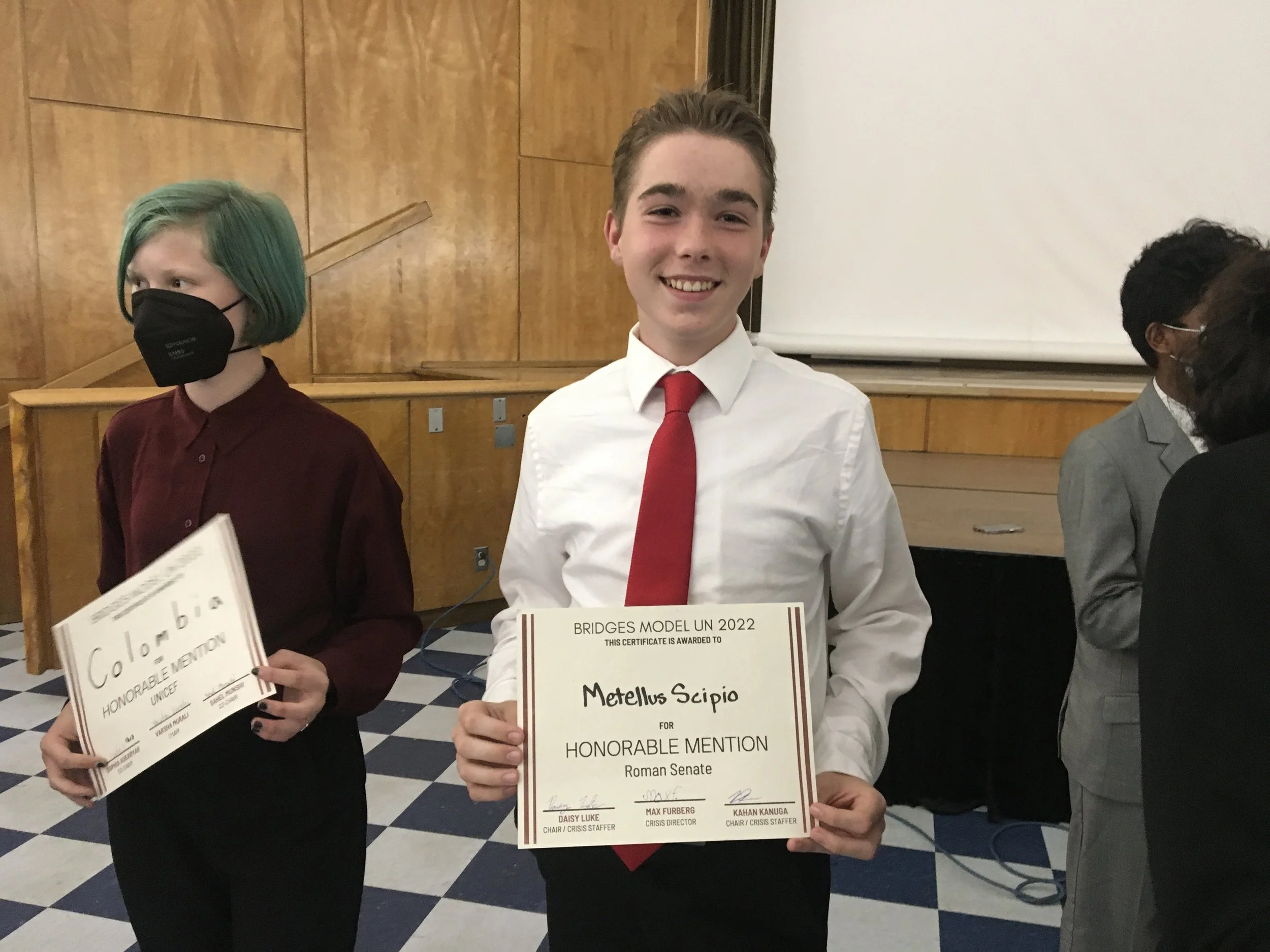 Honorable Mentions are given to 2-4 delegates the chair believes deserve recognition for their hard work and participation during a conference. Honorable Mention winners will be awarded a certificate during the closing ceremony.